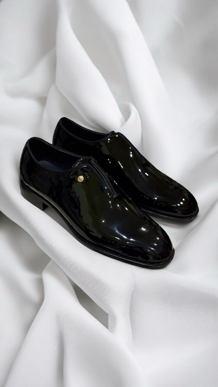Crafted for the most formal moments, our hand-welted patent leather black-tie shoe is the definition of refined elegance. Made from high-gloss European patent leather, the upper is meticulously cut, stitched, and polished to achieve a flawless mirror finish—designed to complement tuxedos and ceremonial attire effortlessly.